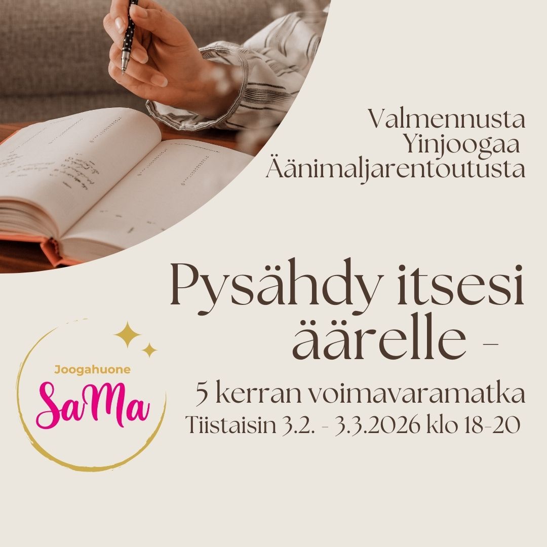 "Tervetuloa Joogahuone SaMa:an, joka tarjoaa lempeää ja palauttavaa yinjoogaa, äänimaljarentoutuksia ja äänimaljahoitoja sekä itsetuntemusta ja mielekästä elämistä vahvistavaa muutosvalmennusta. Autan sinua rentoutumaan, palautumaan ja elämään tasapainoista, omannäköistä elämää."